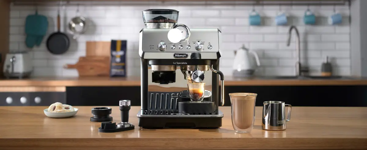 The Maestosa automatic coffee maker flawlessly balances advanced technology with eye-catching design. Bold mirrored black glass makes the front particularly striking. Brew a range of personalised beverages with precise grinding and perfectly creamy milk foam. Choose from 2 coffee blends and serve 2 cups of your favourite coffee at once to share the De'Longhi experience.