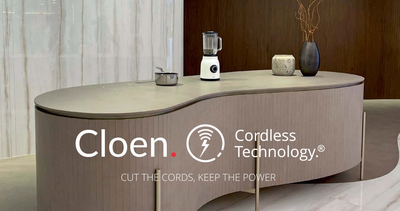 Cloen technology comes in forms of modular panels in different sizes that can be embedded on granite or marble table tops and performs the cordless function for both to turn on cordless kitchen appliances such as blender, mircowave, and so on. And also to be able to directly cook or heat your induction pans or pots directly from the table surface top. This modular panels will allow for customisable table design that you can use directly for cooking and dining at the same time saving space and optimalising your kitchen be it on your apartment or on your house.