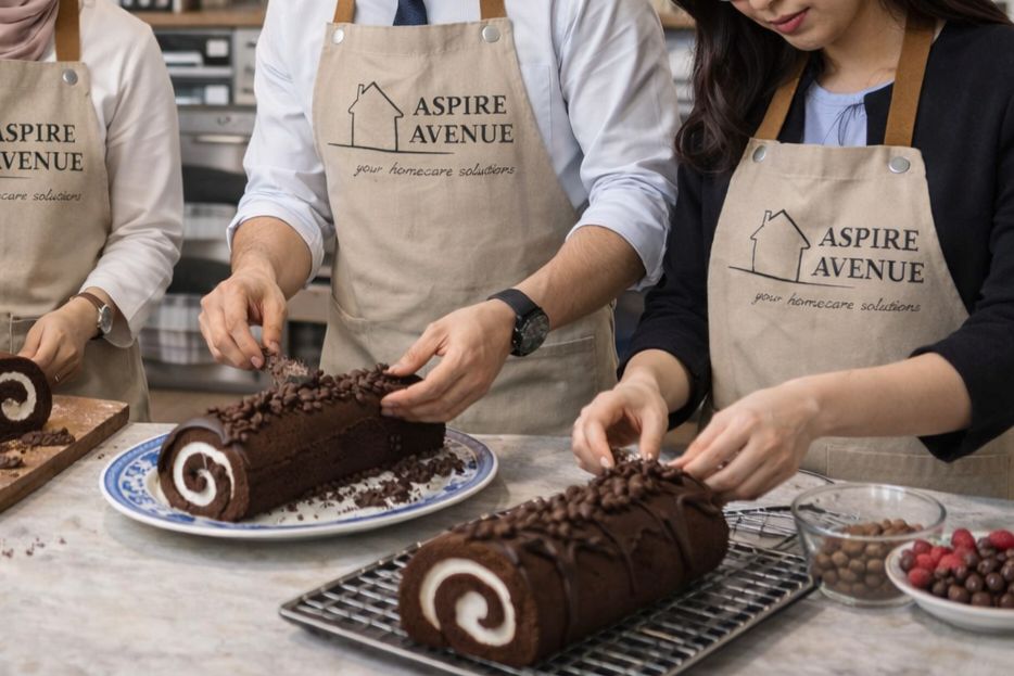 Challenge your team with our hands-on Chocolate Swiss Roll Log Cake Workshop. In this interactive session, participants will learn essential baking techniques including sponge cake preparation, meringue making, cream filling, rolling techniques, and cake decoration.