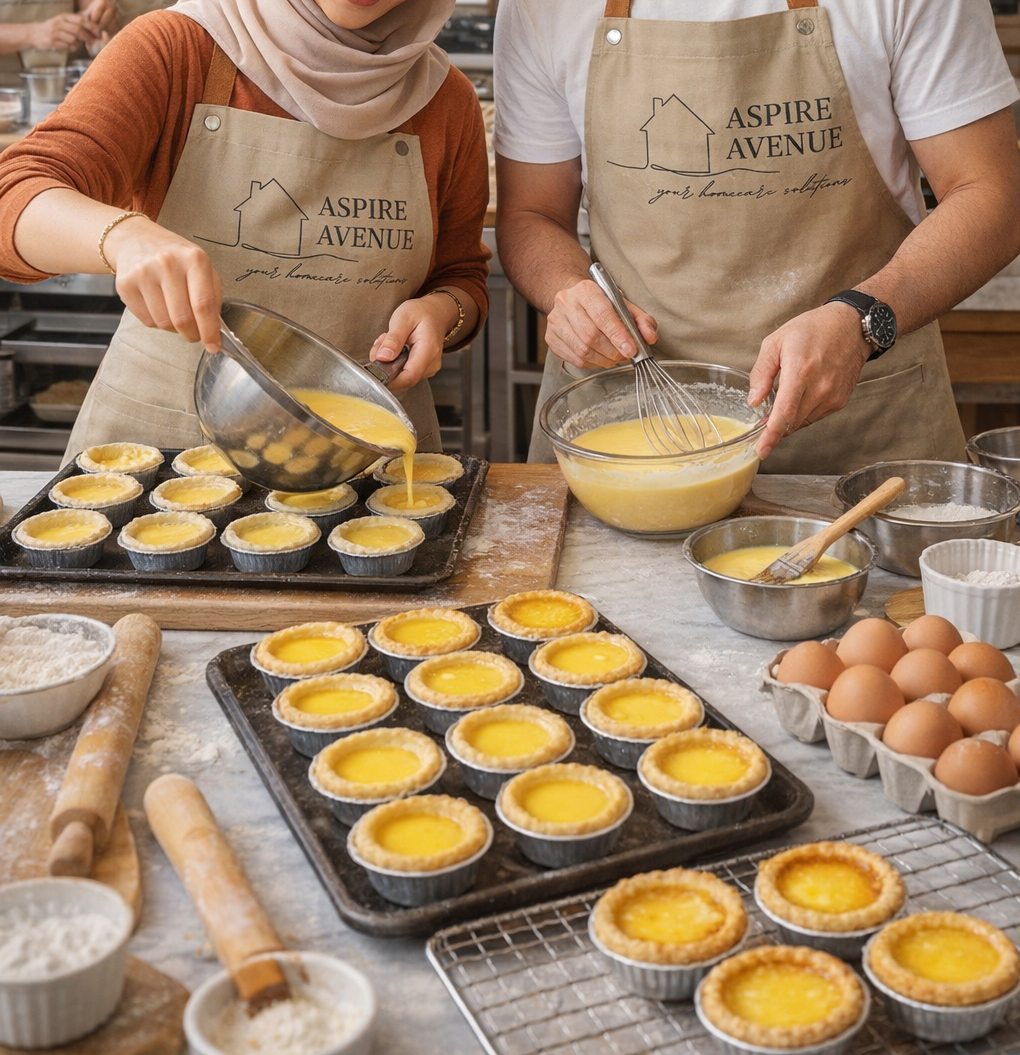 Bring teams together through our hands-on Egg Tart & Pandan Cake Workshop. In this interactive session, participants will learn essential baking techniques including batter preparation, custard making, and the convection baking method while creating classic Asian desserts from scratch.